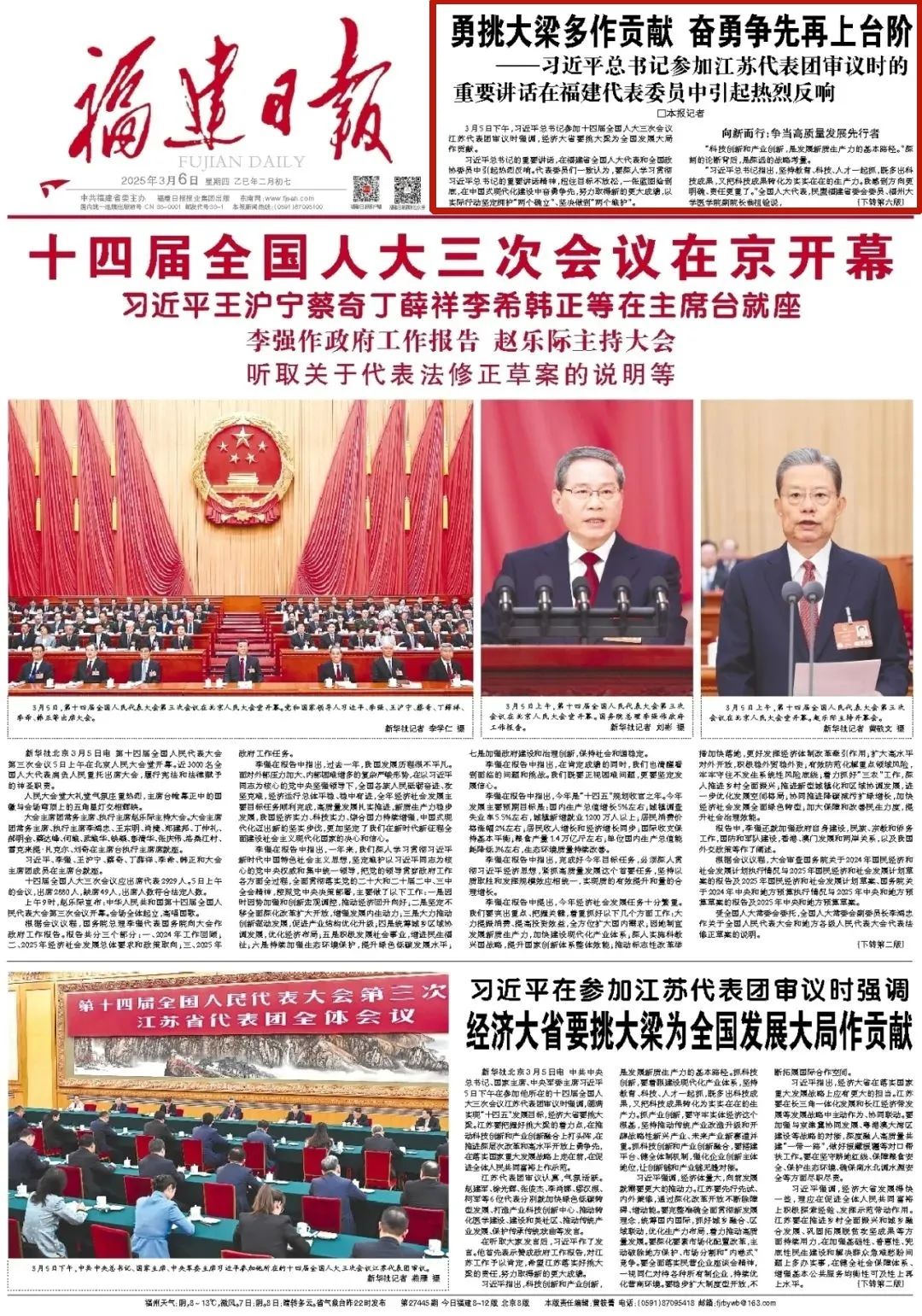 原标题:勇挑大梁多作贡献 奋勇争先再上台阶——习近平总书记参加江苏代表团审议时的重要讲话在福建代表委员中引起热烈反响