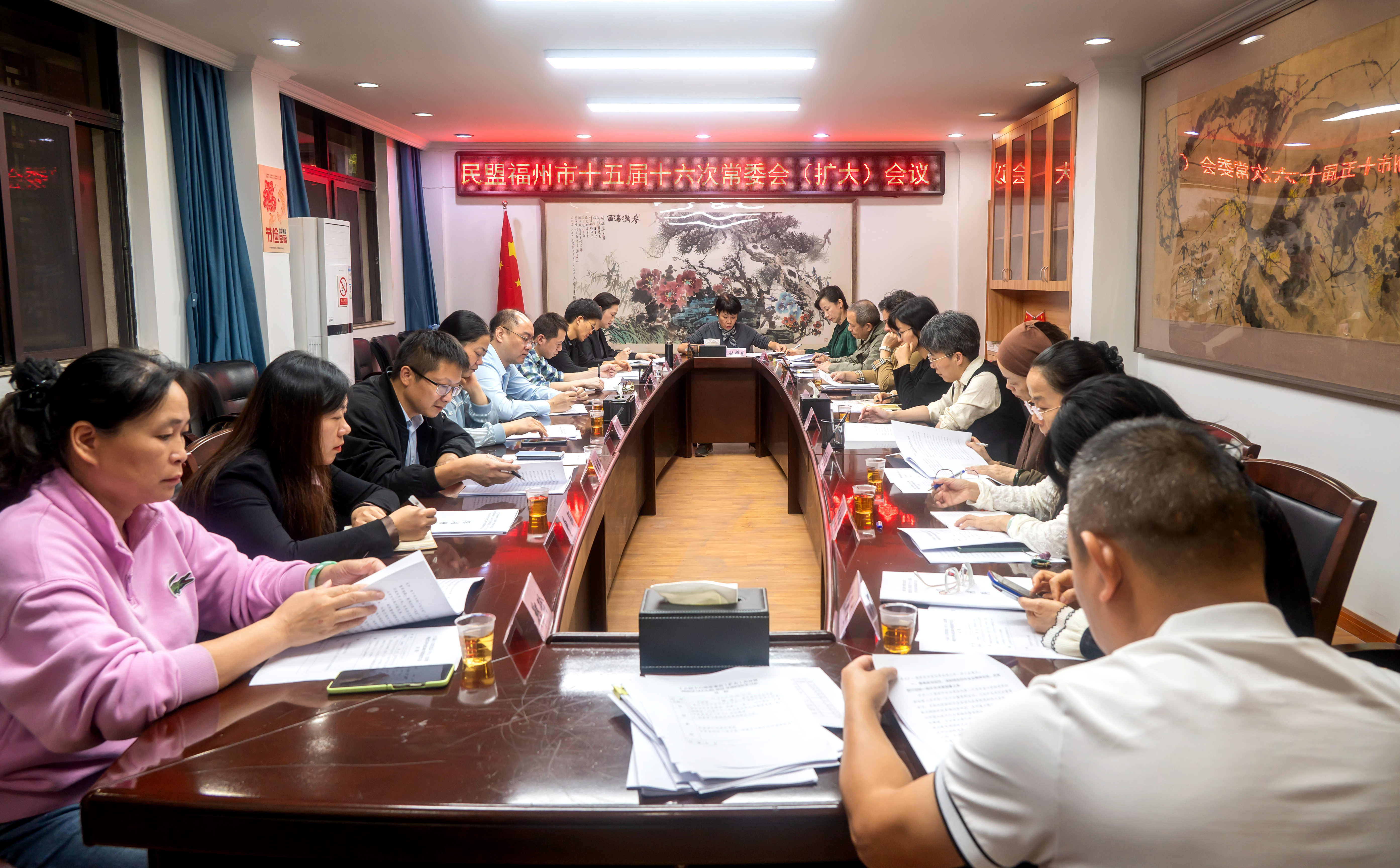 11月6日,民盟福州市委会召开民盟福州市十五届十六次常委会(扩大)会议暨理论学习中心组学习会,学习贯彻习近平总书记在中共二十届四中全会上的重要讲话和全会精神,传达学习民盟中央、福建省委会及中共福建省委、福州市委有关会议精神。民盟福建省委会副主委、福州市委会主委林群慧主持并讲话。市委会常委,各区工委主委、专委会主任及机关部室负责人参加会议。
