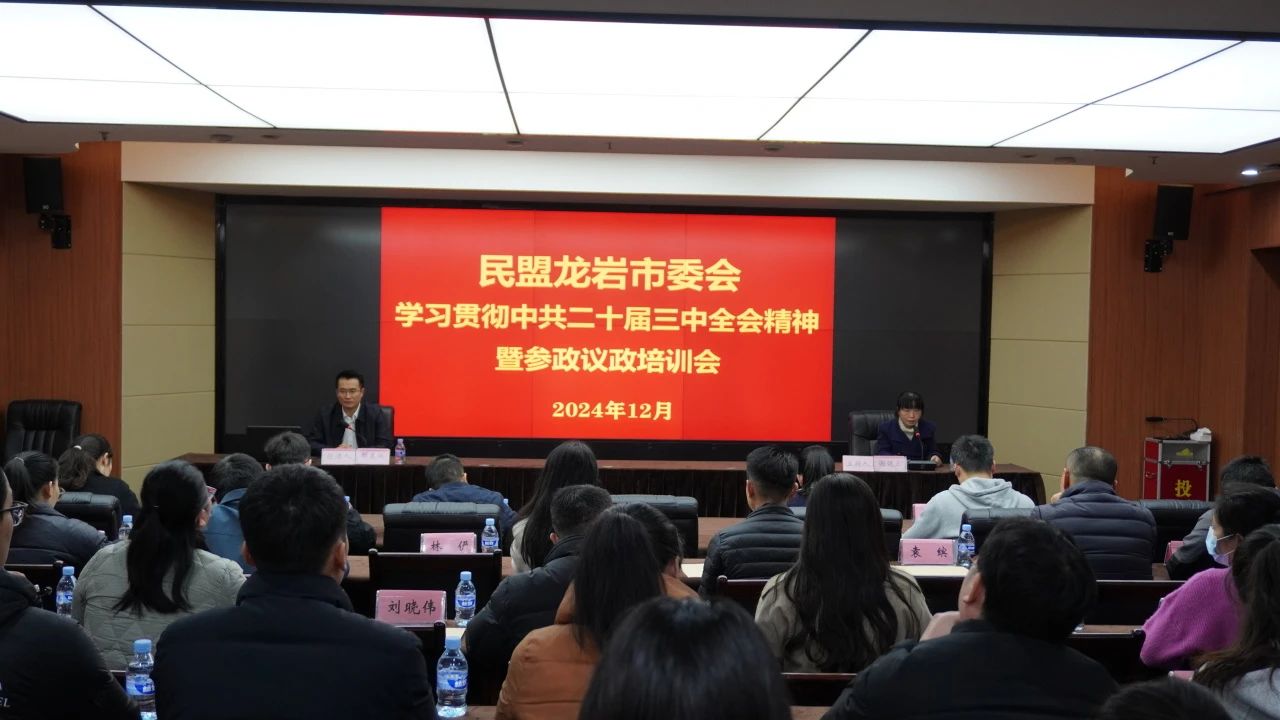 为深入学习贯彻中共二十届三中全会精神,进一步增强盟员政治理论素养,切实提升参政议政能力和水平,12月25日,民盟龙岩市委会举办学习贯彻中共二十届三中全会精神暨参政议政培训会。民盟龙岩市委会参政议政部、青年委成员,近三年发展新盟员、入盟积极分子和新申请入盟人员等参加培训。民盟龙岩市委会专职副主委谢健宏主持会议。