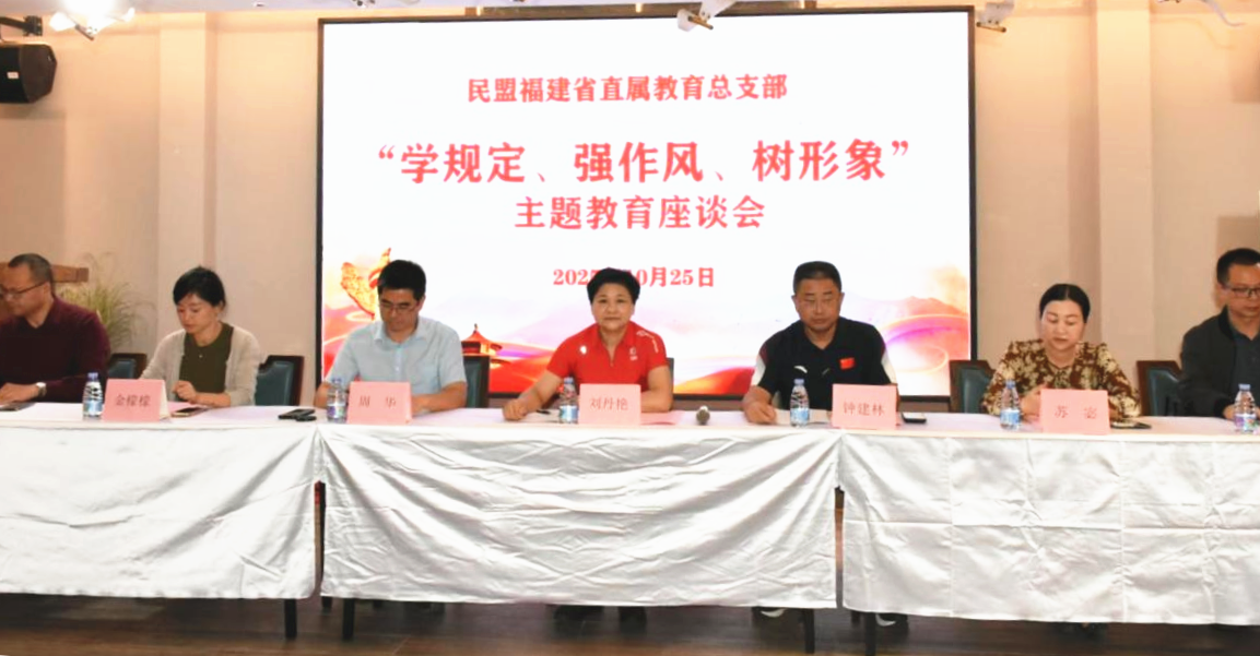 10月25日-26日,民盟福建省直属教育总支部在福州长乐举办“学规定、强作风、树形象”主题教育活动并召开座谈会。民盟福建省委会专职副主委兼秘书长刘丹艳出席并讲话,总支主委钟建林,副主委周华、金檬檬、苏宓以及总支盟员近30人参加活动。