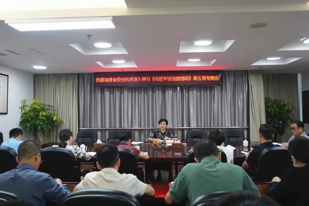 9月29日下午,民盟福建省委会机关召开深入学习《习近平谈治国理政》第五卷专题会,省委会专职副主委兼秘书长刘丹艳主持并讲话,一级巡视员刘泓和机关干部职工参加学习会。