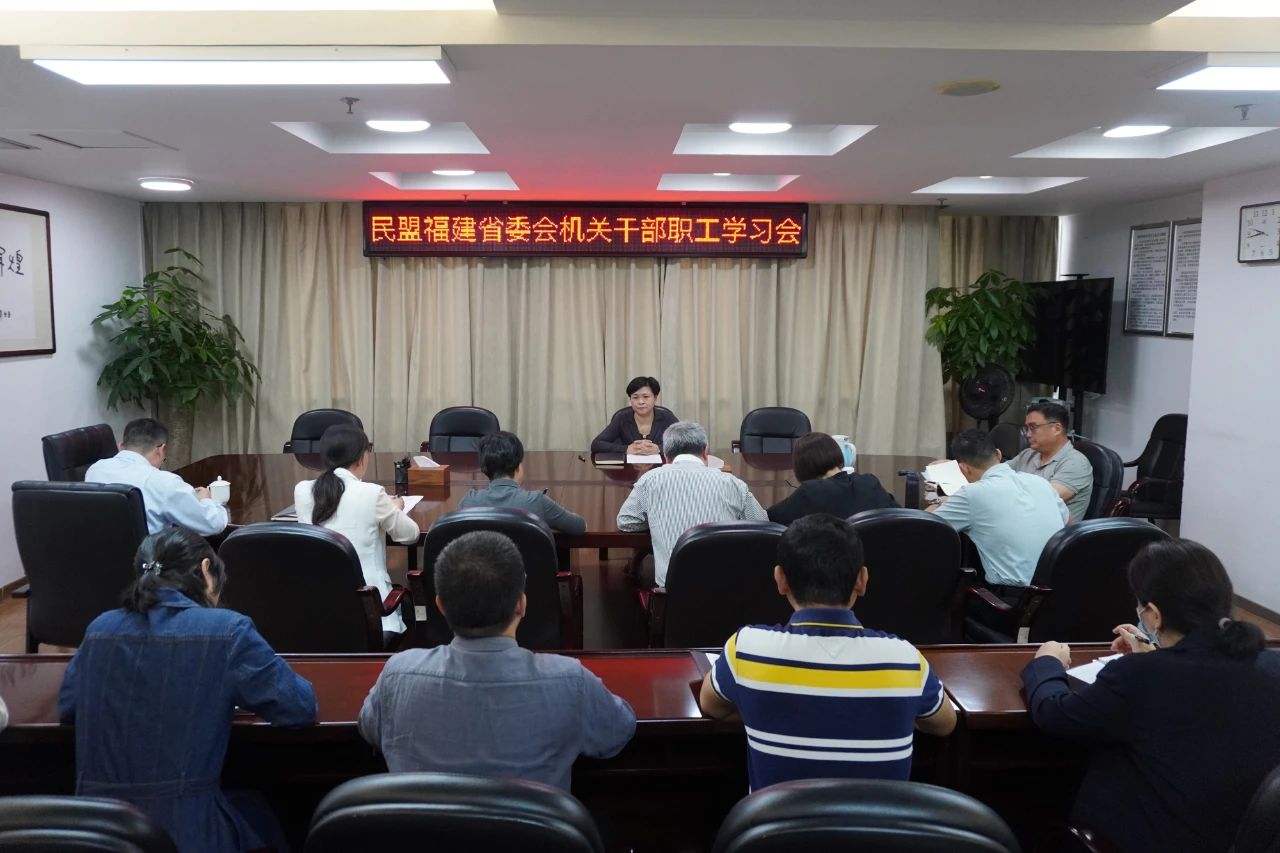 5月26日上午,民盟福建省委会召开机关干部职工学习会,专题学习习近平总书记关于党的建设的重要思想,专职副主委兼秘书长刘丹艳主持并讲话,一级巡视员刘泓参加会议。