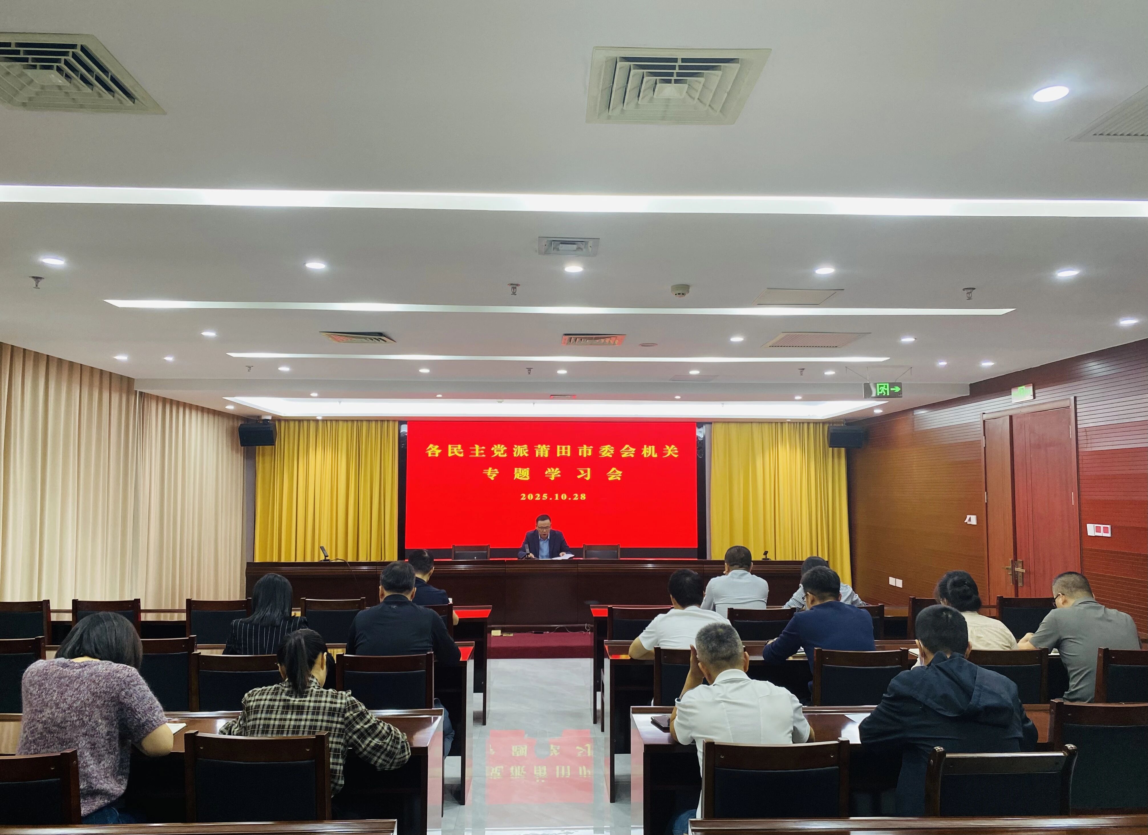10月28日,各民主党派莆田市委会机关召开专题会议,传达学习中共二十届四中全会精神、中共福建省委常委会(扩大)会议精神以及中共莆田市委常委会(扩大)会议精神。