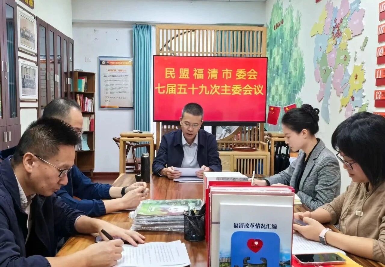 11月13日上午,民盟福清市委会召开七届五十九次主委会,传达学习贯彻习近平总书记在中共二十届四中全会上的重要讲话和全会精神。与会盟员全面学习了《中国共产党第二十届中央委员会第四次全体会议公报》,重点围绕加快发展文化产业、办好人民满意的教育等方面进行了交流研讨。
